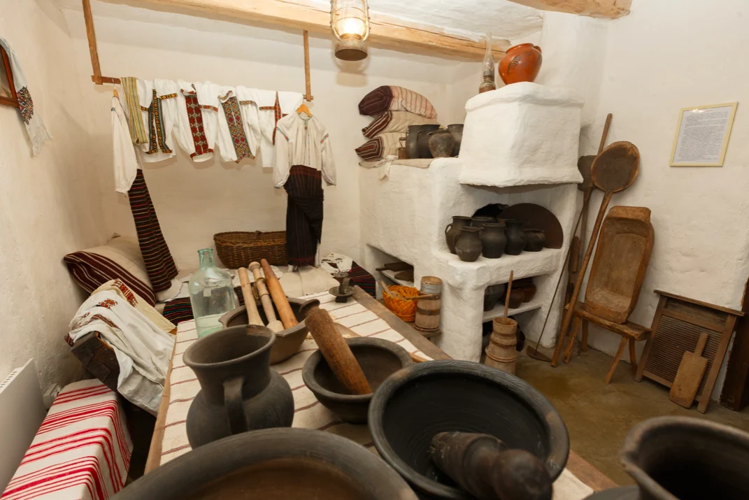 2. Лемківська світлиця. Традиційне помешкання лемків з автентичним інтер'єром. Експозиція демонструє особливості життя та культури лемківського народу, включаючи меблі, посуд та інші побутові речі.