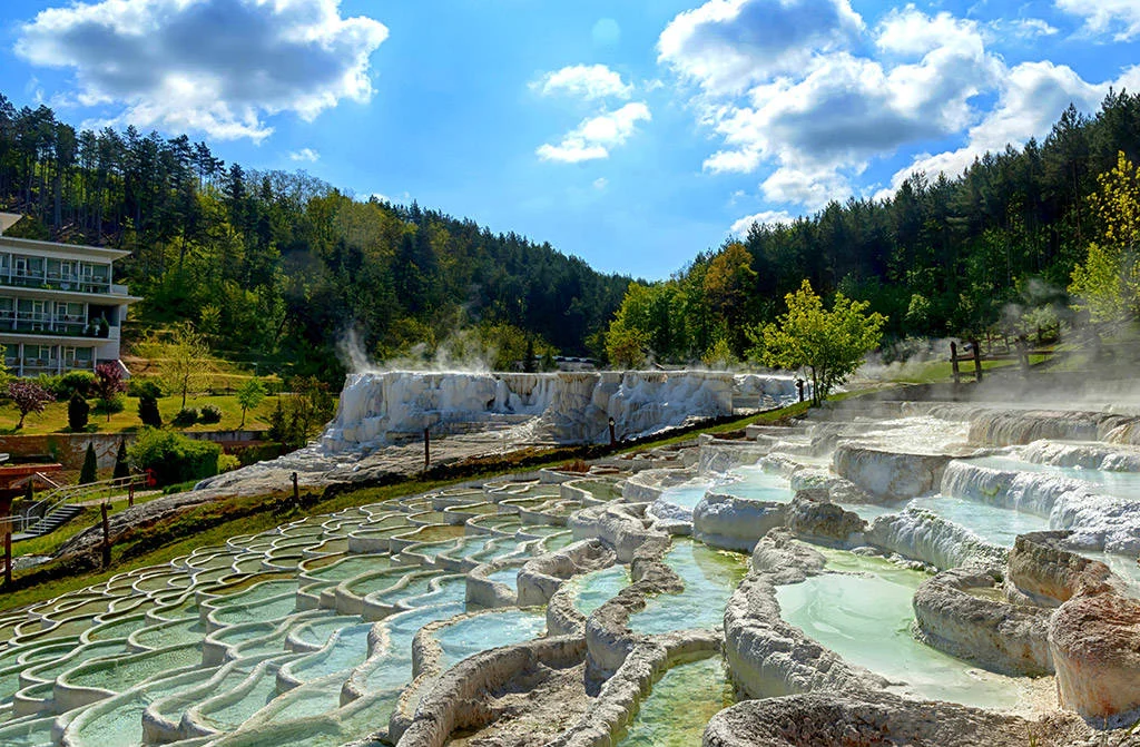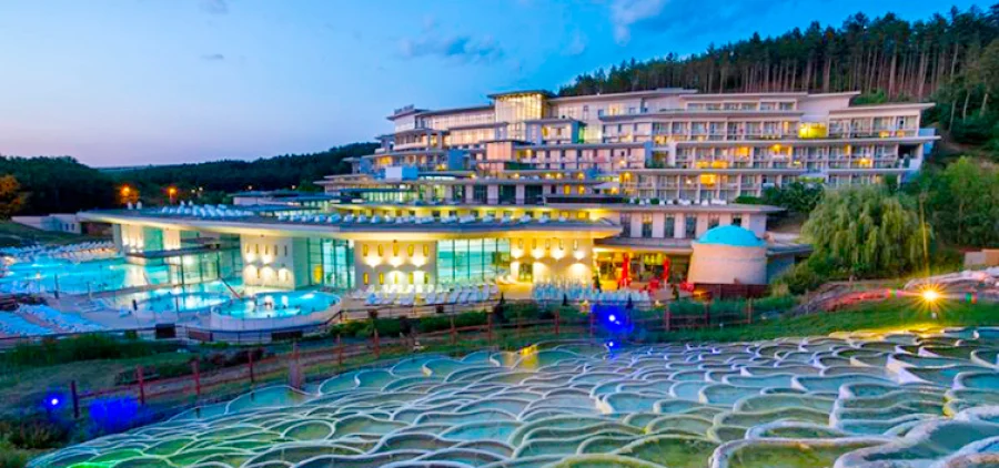 Ранкове прибуття в термальні купальні м. Егерсалок. Чисте повітря, гарний ландшафт, сосновий ліс і великий комплекс з лікувальною водою. Егерсалок – це невелике курортне селище в 140 км від Будапешта. Купальні знаходяться біля гарячого джерела, що б'є на поверхню з глибини 410 м. Температура води + 68°С. Вона придатна, в основному, для лікування травм опорно-рухового апарату, суглобових і ревматичних захворювань. Стікаючи вниз, вода створила соляні пагорби, через що термальні купальні Егерсалока називають «Угорським Памуккале».