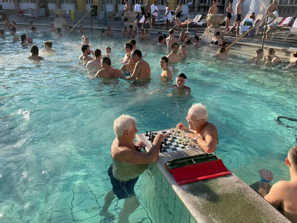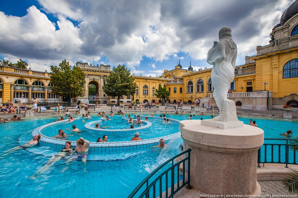 Також пропонуємо відвідати термальні купальні "Сечені" – це один із найбільших і найвідоміших термальних комплексів у Європі, розташований у самому серці Будапешта, в парку Варошлігет. Вони славляться своїми гарячими термальними водами, які піднімаються з глибини понад 1,200 метрів і мають цілющі властивості, збагачені мінералами, що допомагають при захворюваннях суглобів, нервової системи та для загального зміцнення здоров'я. Архітектура купалень вражає: величні жовті будівлі у стилі нео-бароко створюють атмосферу розкоші та елегантності. Комплекс включає 18 басейнів — як критих, так і під відкритим небом, де можна насолоджуватися купанням навіть взимку, коли пара піднімається над гарячими водами на фоні засніженого парку. Тут є і сауни, і парні, а також різні гідромасажні та оздоровчі процедури. Купальні Сечені — це місце, де поєднуються релакс і оздоровлення, історія та сучасні зручності. Відвідувачі можуть не лише відновити свої сили, але й відчути себе частиною давньої угорської культури купання.